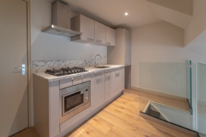 This is a compact dwelling in which living and sleeping space are combined, often with an open kitchen.