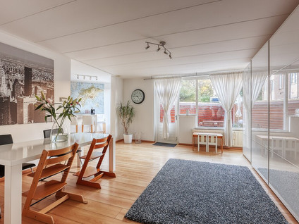 Dit is een gezinsvriendelijke woning met meerdere verdiepingen en een eigen tuin, ideaal voor langdurig wonen.